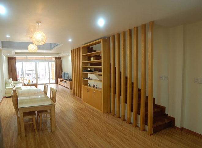 Đồ dùng nội thất và một vài chi tiết bằng gỗ, với tông màu hài hòa góp phần tạo thêm sự sang trọng cho không gian bên trong của ngôi nhà.