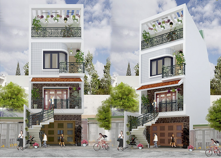 Ngôi nhà đẹp được xây dựng trên mảnh đất vuông vắn với chiều ngang 10m và chiều rộng 11m. Biệt thự vườn được thiết kế mái ngói kiến trúc lệch tầng khá đẹp mắt và tạo được sự ấn tượng, khác biệt những mẫu nhà khác. Không gian chú trọng thiết kế những mảnh xây bao quanh tạo sự thoáng mát, thân thiện với môi trường, mang đến bầu không khí dễ chịu, cụ thể các kiến trúc sư bố trí những cây bụi nhỏ và cỏ Nhật xen kẽ đá xếp ở lối đi và các chậu cảnh bồn hoa xung quanh biệt thự. Gam màu được lựa chọn là xanh xám, hòa quyện với cảnh vật xung quanh trông rất nhẹ dịu và tinh tế. Phần chân tường được ốp đá đẹp mắt, không gian bố trí hợp lý và rất hiện đại. Nhìn vào căn biệt thự đẹp này, khách hàng dễ cảm nhận được sự thân thiện, đây sẽ là không gian lý tưởng để thư giãn và nghỉ ngơi bên gia đình.