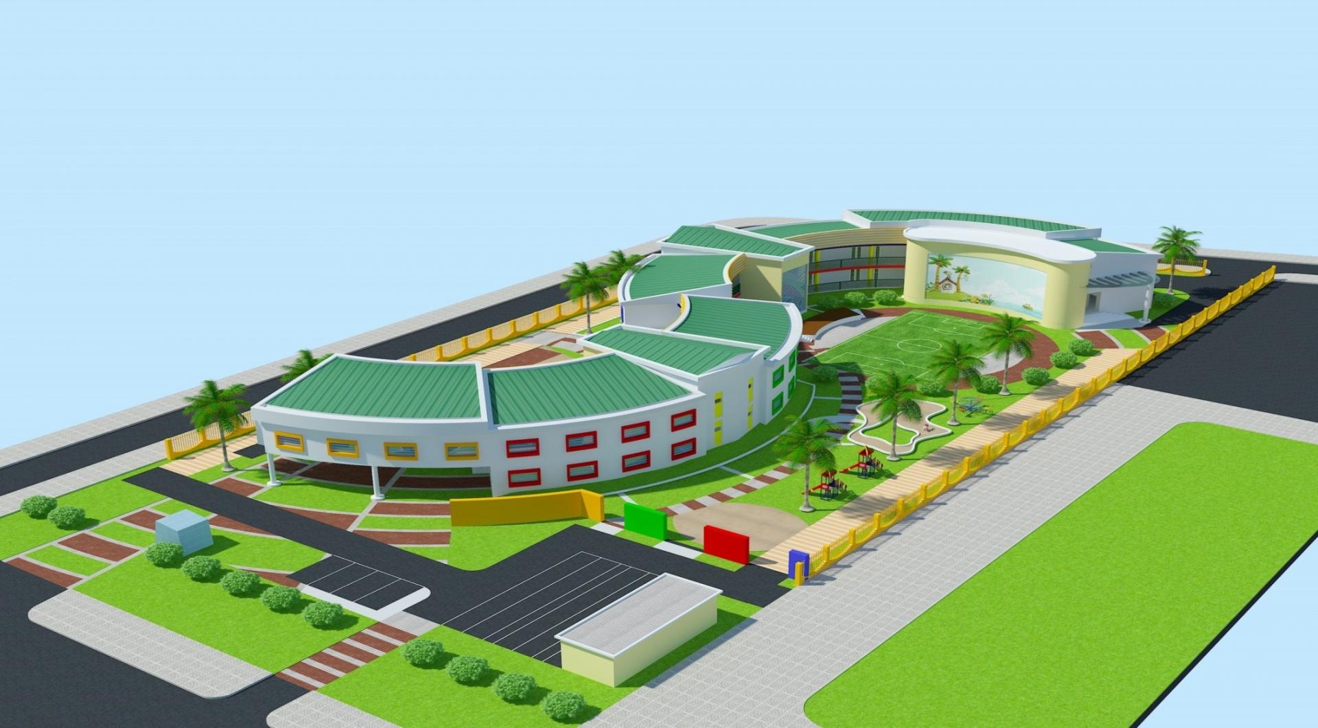 Điểm nổi bật của thiết kế là những mái nhà xanh cong cong chạy dài liền tạo ra ba sân vui chơi cho trẻ. Từ sân chơi không những thầy cô giáo mà cả trẻ cũng có thể chạy nhảy dễ dàng lên phía mái nhà trồng rau – nơi có độ dốc cao dần
